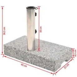 De Cosmo granieten parasolvoet is gemaakt van space grey kleurig graniet waarvan de bovenzijde is gepolijst, dit geeft de voet een strakke en luxe uitstraling. De parasolvoet is voorzien van twee nylon wielen met aan de tegenovergestelde zijde een mooi RVS handvat. Hierdoor is de voet gemakkelijk te verplaatsen naar elke plek in de tuin. De parasolbuis is gemaakt van RVS en is geschikt voor stokparasols met een maximale buisdikte van 55 millimeter.