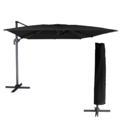 Het mooie weer is terug? Bescherm uzelf tegen de zon dankzij uw MOLOKAI parasol: de grote overspanning en het ondoorzichtige polyester doek maken van deze parasol uw beste bondgenoot om de zomer door te brengen. De aluminium structuur met epoxyverf en het waterafstotende doek zorgen ervoor dat de parasol bestand is tegen de buitenomstandigheden. Naast een zeer modern design dankzij de kleuren en de rechthoekige vorm, is uw parasol zeer praktisch: hij kan gekanteld en 360° gedraaid worden. Deze excentrische parasol zal perfect zijn om een grote tuintafel in de schaduw te zetten. Zorg ervoor dat hij op de grond blijft staan met onze op te vullen ballastplaten, ook verkrijgbaar bij Happy Garden.