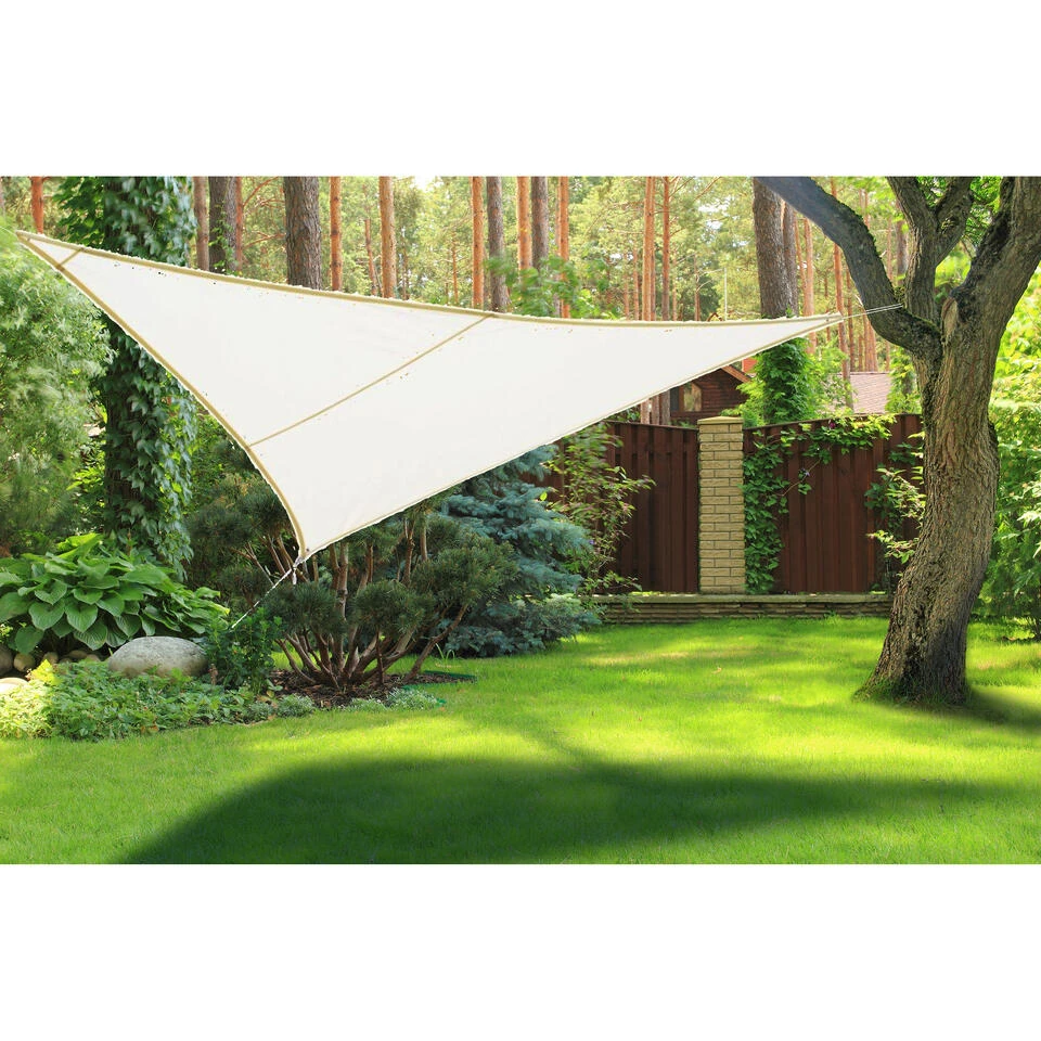 Schaduwdoek/zonnescherm/zonwering driehoek wit 3 x 3 x 3 meter. Stevig schaduwdoek van waterafstotend gecoat polyester om een fijne schaduwplek te realiseren in uw tuin. Inclusief 3 meter touw voor de bevestiging. Biedt UV UPF50 bescherming tegen de zon. Serie: Curacao. Schaduwdoeken/zonnezeil/zonnedoek/zonwering voor in de tuin of terras.