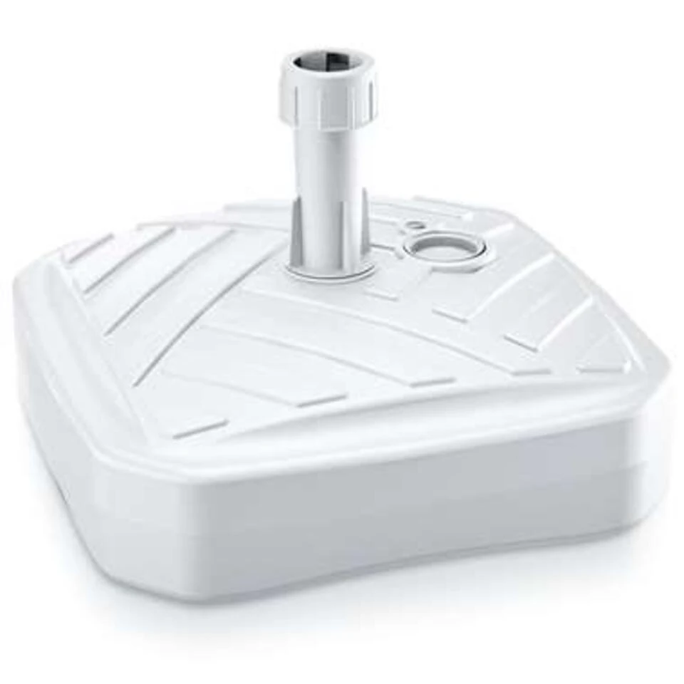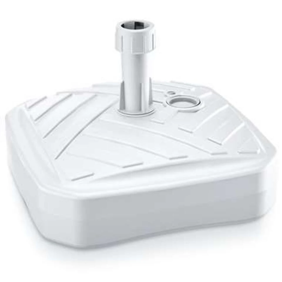 1x Stuks vierkante kunststof parasolvoeten wit 12 liter. Formaat: lengte: ca 39 cm. Breedte: ca 39 cm. Hoogte: ca 13 cm. Aantal liters: 12. Materiaal: kunststof.