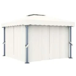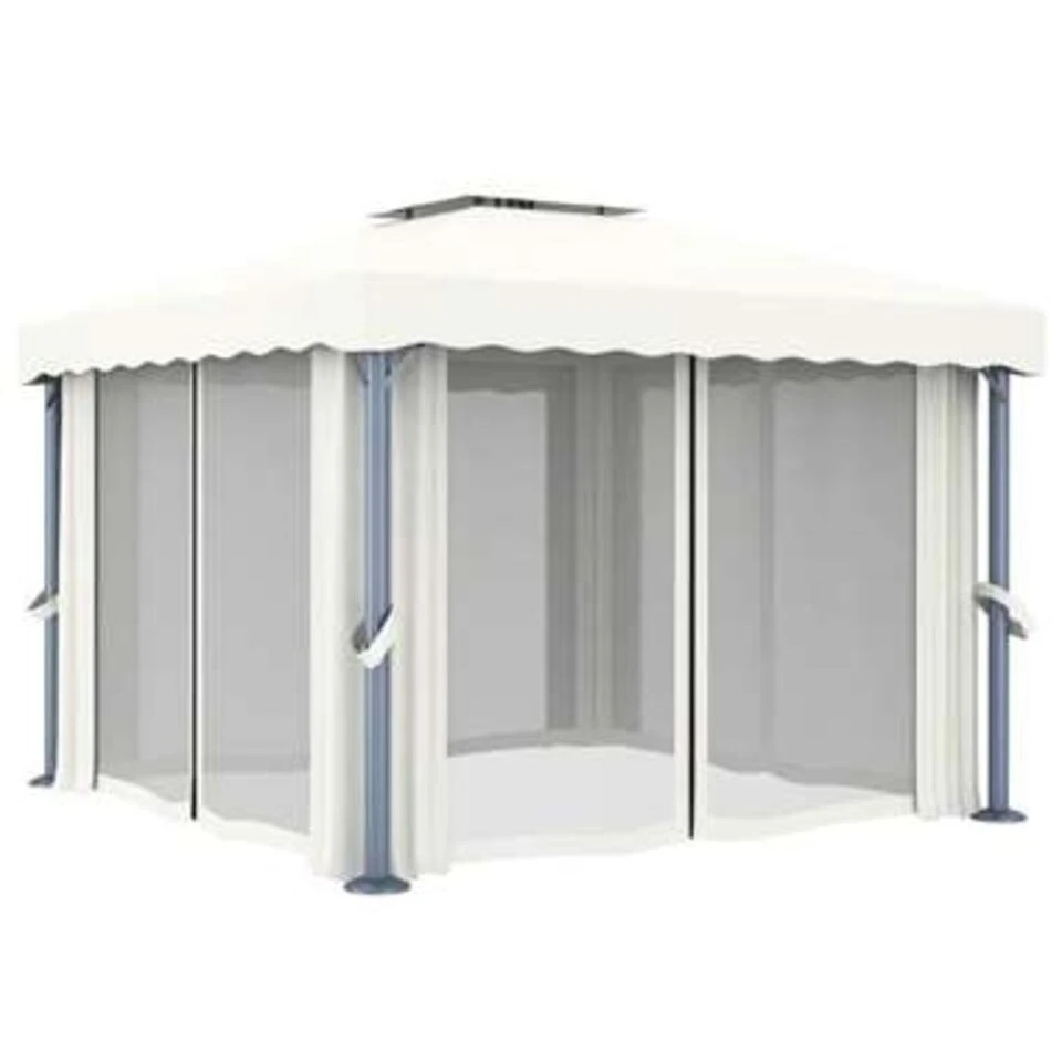 Het is ontworpen om een koele plek te bieden bij tuinfeesten, familiepicknicks, barbecues en andere sociale bijeenkomsten. Het is gemaakt van een aluminium paal met een gepoedercoat stalen steunbuis, waardoor het zeer stevig en duurzaam is. De luifel en zijwanden zijn gemaakt van hoogwaardig polyester met PA-coating, waardoor je wordt beschermd tegen schadelijke uv-stralen en milde regen. Een goed ontworpen, 2-laags dak zorgt voor voldoende luchtstroom. Bovendien zijn er gordijnen en gaasschermen inbegrepen voor volledige bescherming, waardoor je extra privacy hebt terwijl je vervelende muggen en andere insecten weghoudt. Klittenband is inbegrepen voor eenvoudige bevestiging.