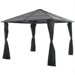 VidaXL Prieel Met Gordijn 3×3 M Aluminium Zwart